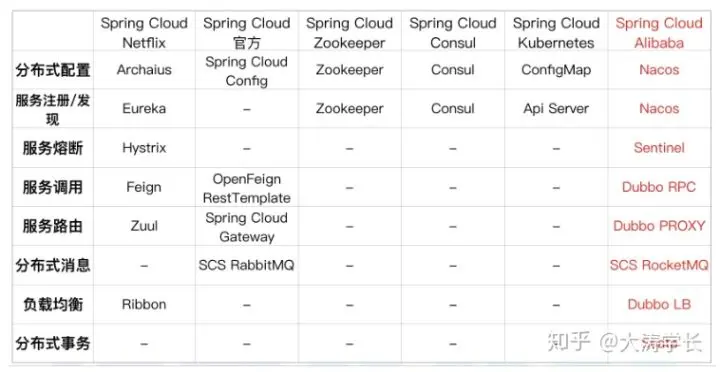 作为 Spring Cloud 体系下的新实现,Spring Cloud Alibaba 跟官方的组件或其它的第三方实现如 Netflix, Consul,Zookeeper 等对比,具备了更多的功能: