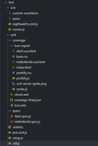 项目中会,生成两个文件夹,e2e和unit,e2e为端到端测试(用于流程测试),unit为单元测试(用于组件的功能测试)。