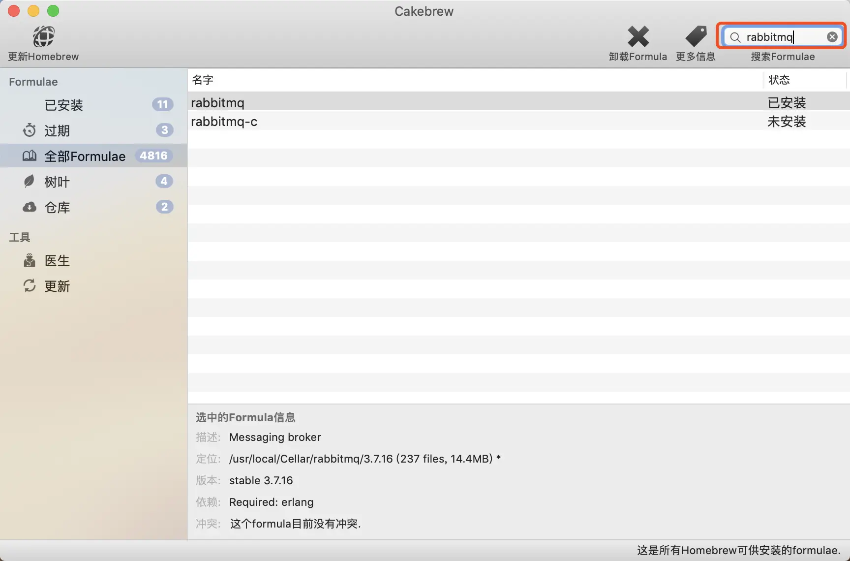 这里只介绍 通过 mac 的包管理器 Homebrew ,来安装 RabbitMQ