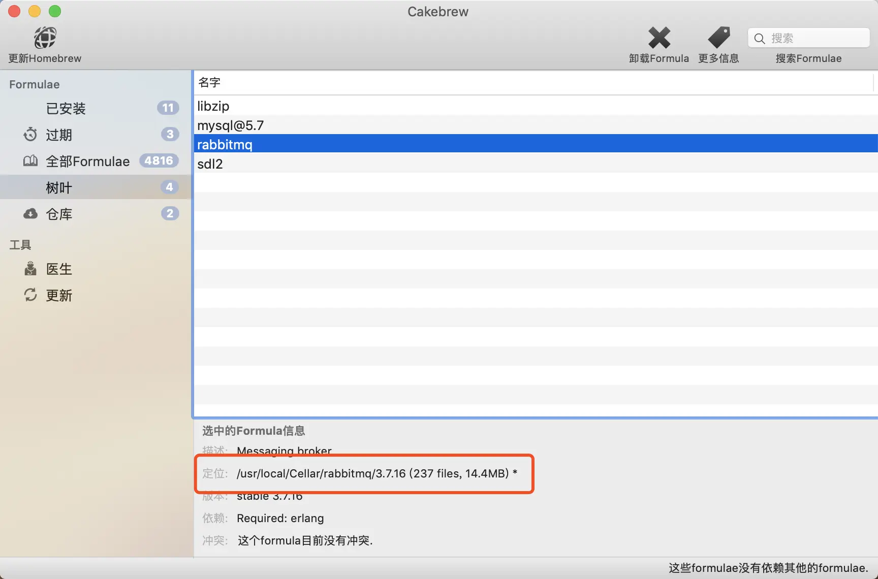 Cakebrew 是 Homebrew 的一个图形化工具,可以非常方便的安装&卸载软件,并清楚的看到安装了哪些软件,以及安装目录,非常方便。