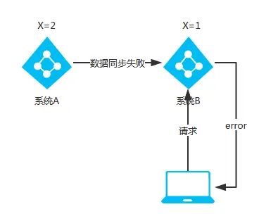 - 当出现网络分区后,系统A与系统B之间的数据同步数据失败,系统B的X=1
