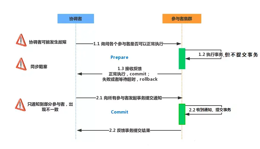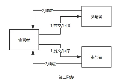 在第二阶段中,当协调者想参与者发送提交事务请求之后,发生了局部网络异常或者在发送提交事务请求过程中协调者发生了故障,这会导致只有一部分参与者接收到了提交事务请求。而在这部分参与者接到提交事务请求之后就会执行提交事务操作。但是其他部分未接收到提交事务请求的参与者则无法提交事务。从而导致分布式系统中的数据不一致