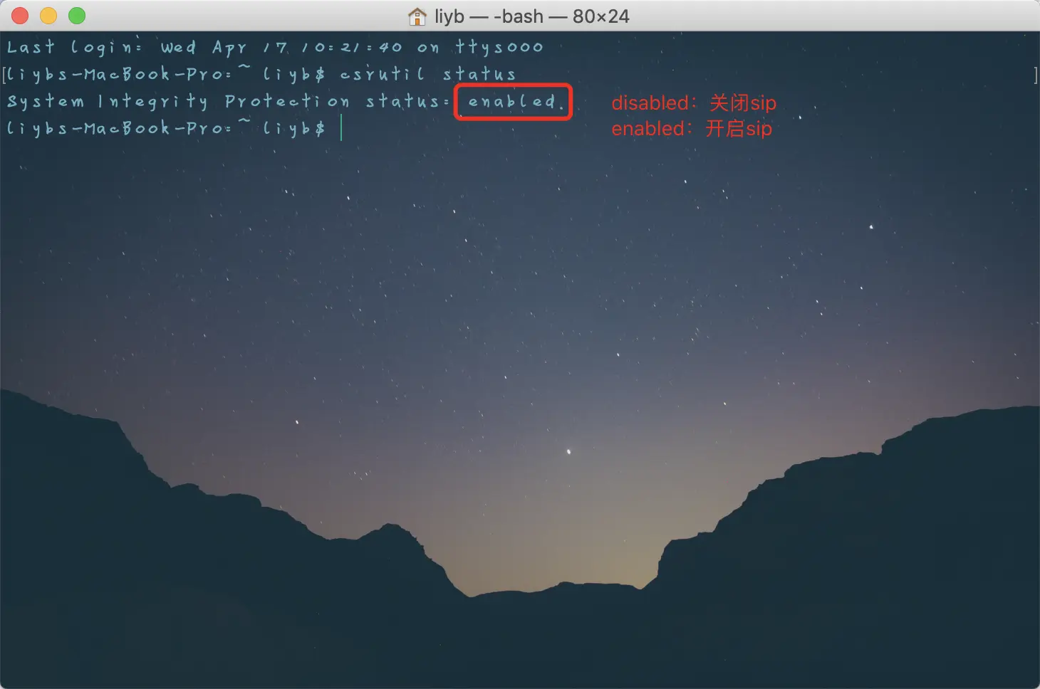 如果是disabled直接跳过关闭sip步骤,如果是enabled执行下一步