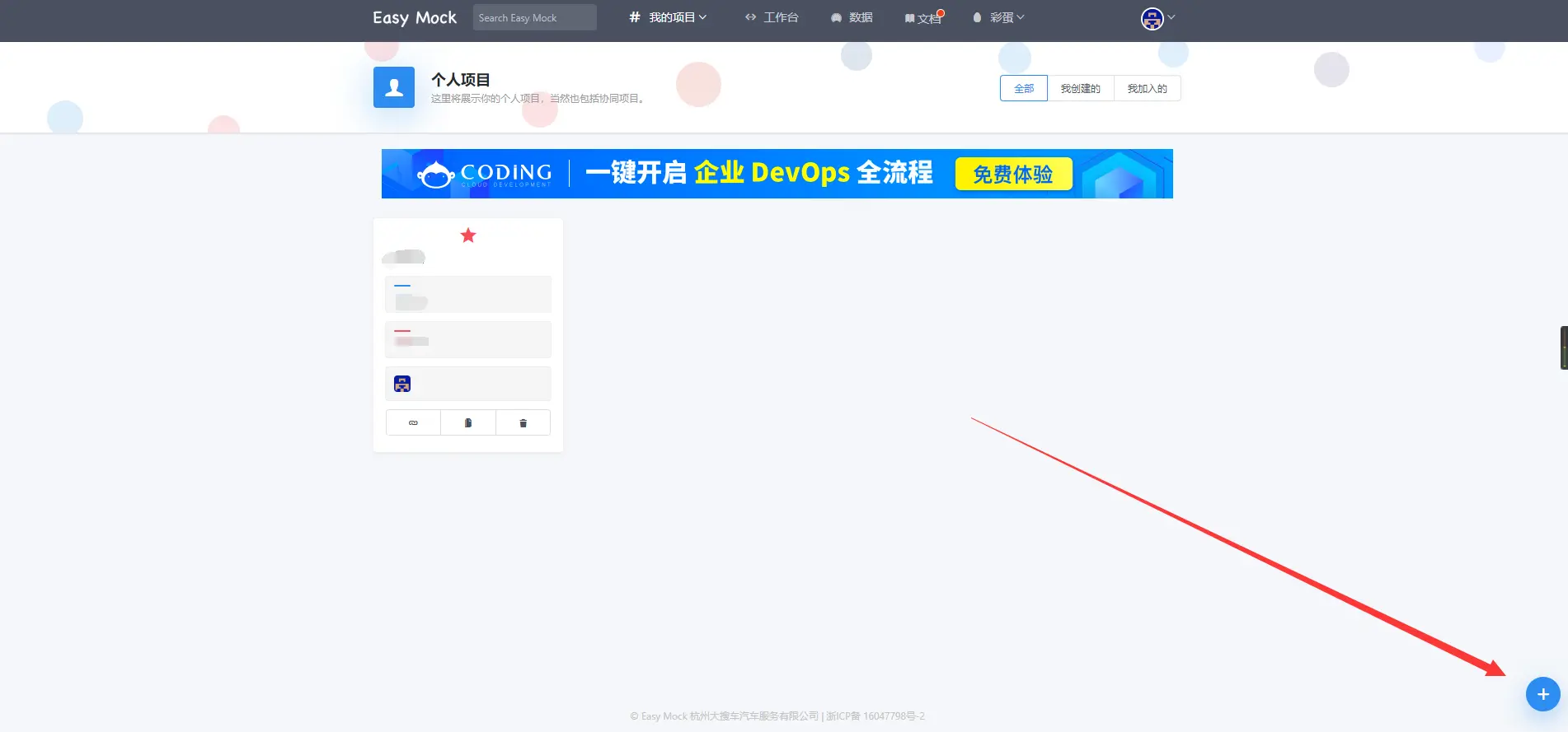 注册后就可以新建项目,不过他新建项目的位置有点诡异,不知道前端怎么想的,