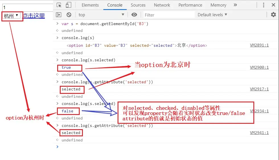 property的checked、selected、disabled才表示该属性实时状态的值(值为true或false)。