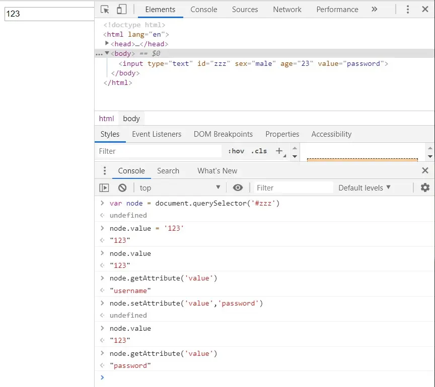 访问内置的HTML attributes,这些attribute不能从property同步过来。例如input标签的value 值。