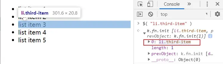$('li.third-item'); //获取标签名为li类名为third-time的元素