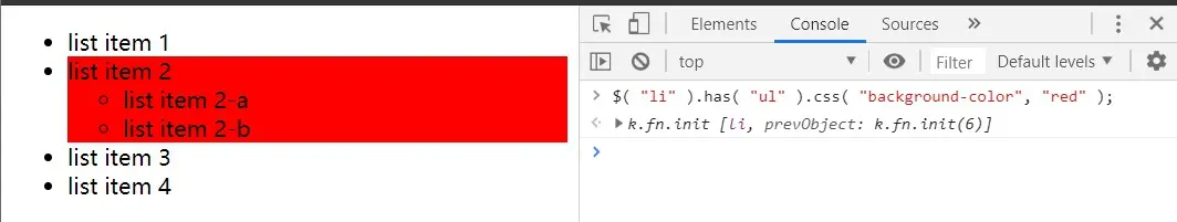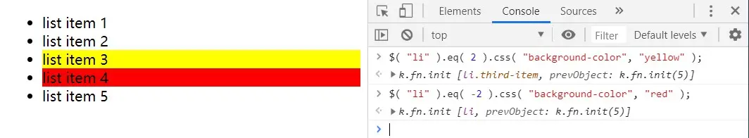 $( "li" ).eq( -2 ).css( "background-color", "red" ); //获取第4个li元素(距离末尾集合为2个)