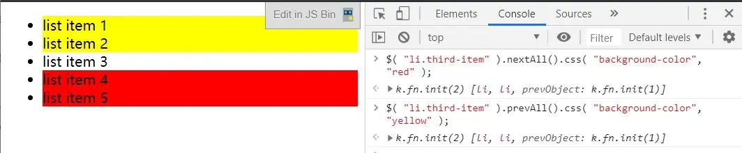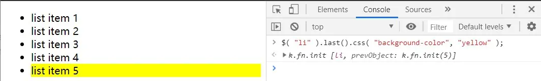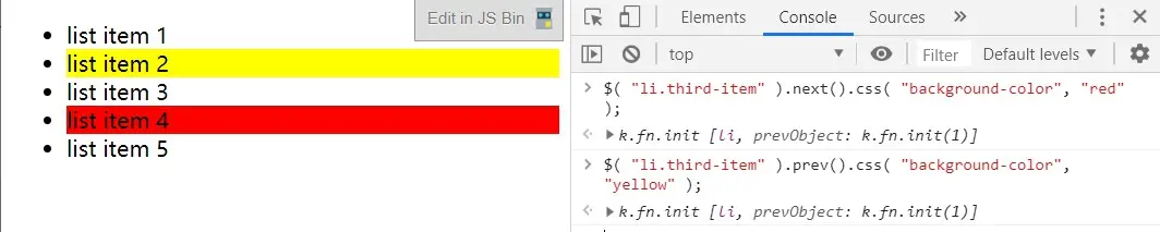 $( "li.third-item" ).prev().css( "background-color", "yellow" );