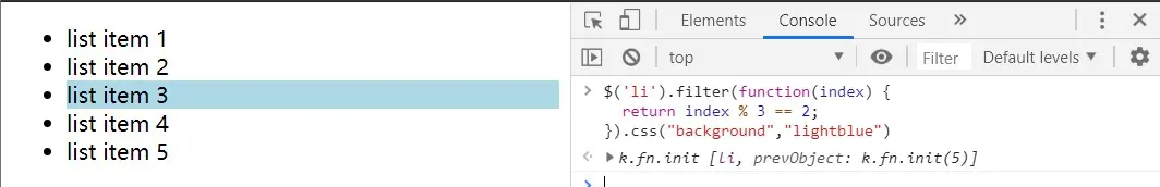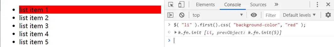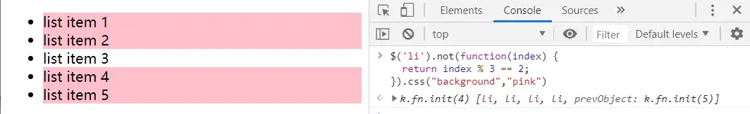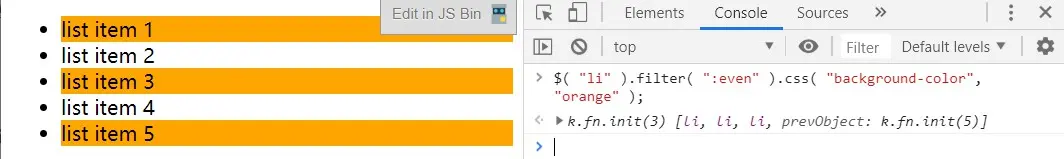 $( "li" ).filter( ":even" ).css( "background-color", "red" );