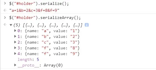 $("#holder").serialize(); //a=1&b=2&c=3&f=8&f=9