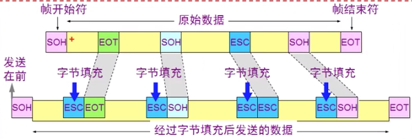 上面提到的帧头和帧尾,实际上是在网络协议中约定好的一些特殊字节作为标识符(例如01111110)。如果数据包中的数据也包含这与帧头和帧尾相同的字节该如何处理呢?为了解决这些问题,数据层在封装数据包的时候如果发现包中有存在跟帧头帧尾相同的字节,会在这些特殊体特前面再加上一些特殊的填充字节用于提示接收端这并不是帧头和帧尾,这很像编程语言中转义字符"\"。接收端在接收的时候会去掉这些"转义字符",把数据包原样递交给上层。这整个过程对于数据链路层之上的数据层是完全无感知的,所以称为透明传输。