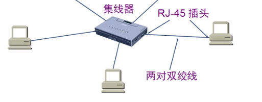 - 目前的以太网一般采用星型拓步结构,通过集线器(集线器工作在物理层)来连接不同的设备。