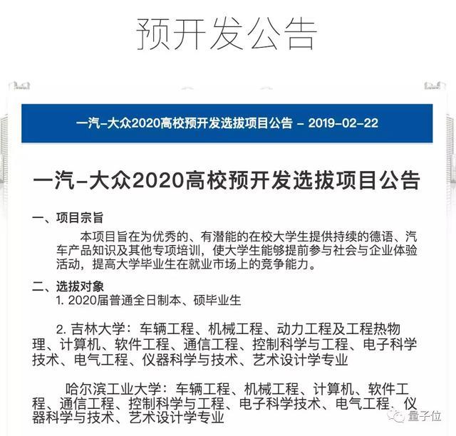 之后,要选拔2020年毕业的车辆、机械、计算机、软件、通信、电气、艺术设计等专业的本硕学生,参加预开发班,参加德语培训、工场体验、汽车知识讲座、实习等课程。