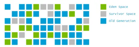 不像之前的堆内存是按分代连续分布的,G1 将堆划分成了一定数量(典型的如2048个)的小区域(Region),每个小区域可能是 Eden, Survior 或者 Old 区域。在逻辑上,Eden 和 Survivor 区域组成了新生代,Old 区域组成了老年代。这个设计允许 GC 每个只收集其中的一些区域而不是整个堆。不过新生代区域每次都会参与。另一个比较新奇的特点是 G1 可以估计每个区域存活对象的多少,存活数量多的区域会先被收集,这也是这个收集器名字的由来,garbage first 收集器。