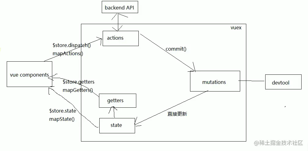 - Vuex的工作原理