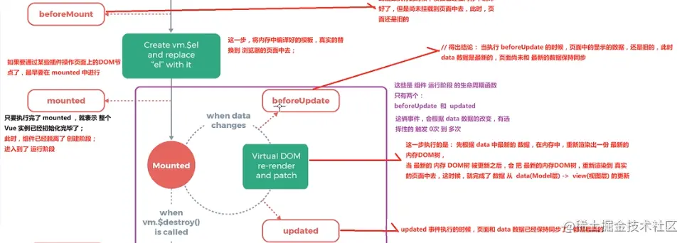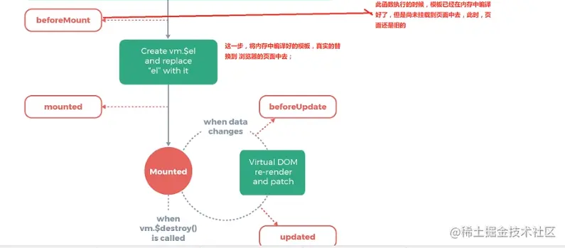- 模板渲染时(mounting)
