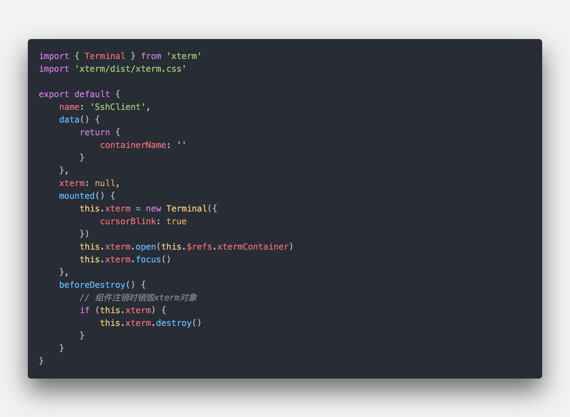 其实现在前端业界已经覆盖了很多角度都有相对成熟的轮子了,所以我们肯定秉承拿来即用的最高原则。经过一番搜索,也很快的定位了xterm:www.npmjs.com/package/xte…, 据说这个vscode的终端也是用这个,这里我也没深究。