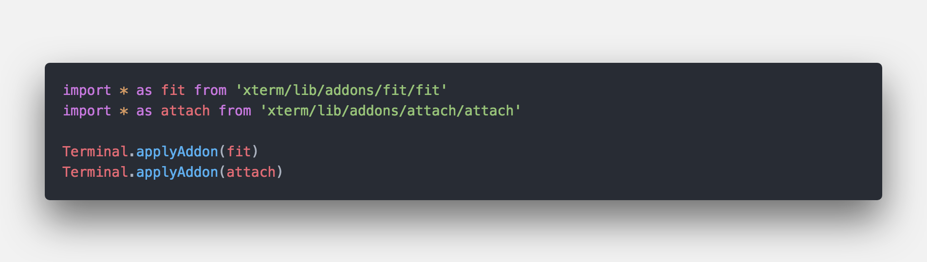 这里我们将会引入两个xterm的扩展,分别是fit和attach,更多的官方扩展参考github.com/xtermjs/xte….