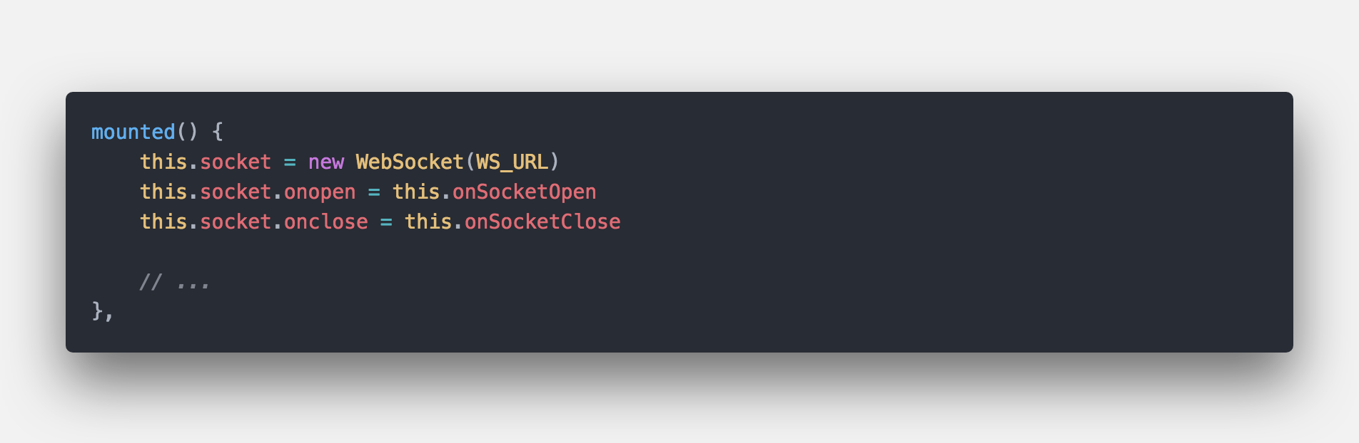 然后在组件的mounted生命周期里面建立websocket连接: