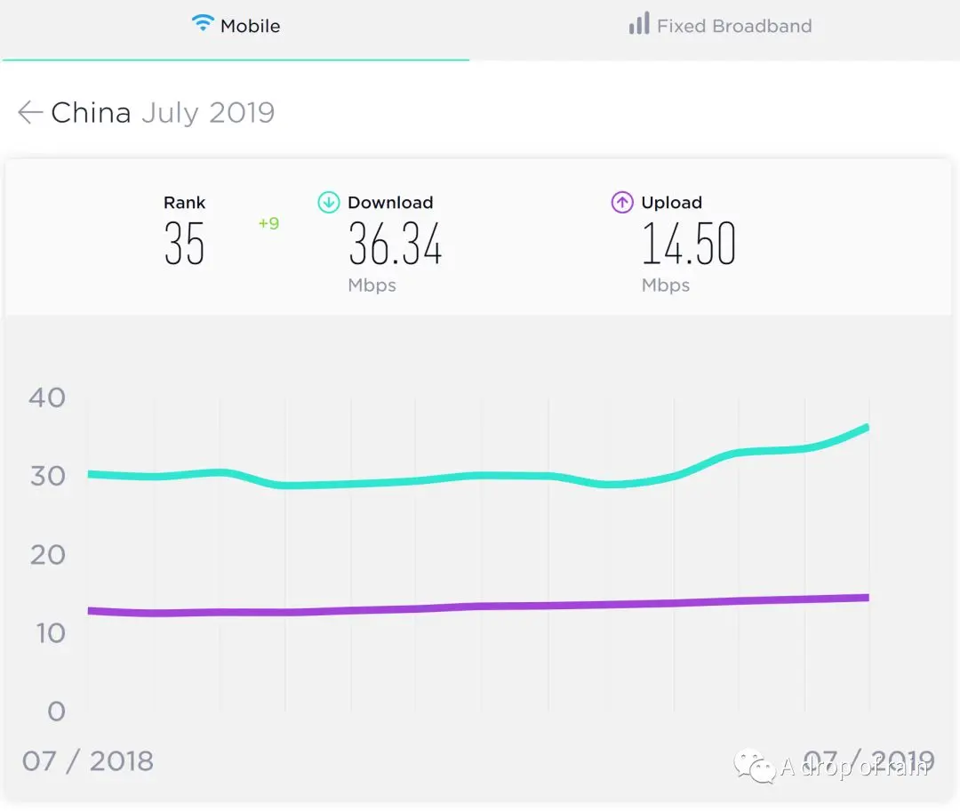 专业测速机构Speedtest 2019年8月给出中国4G网络下载速度为36.34Mbps,相对于世界平均水平26.12Mbps。