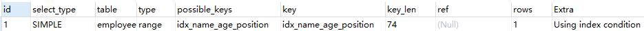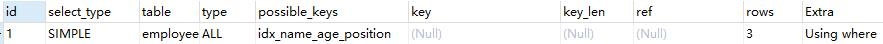 EXPLAIN select name,age,position from employees where name > 'a';