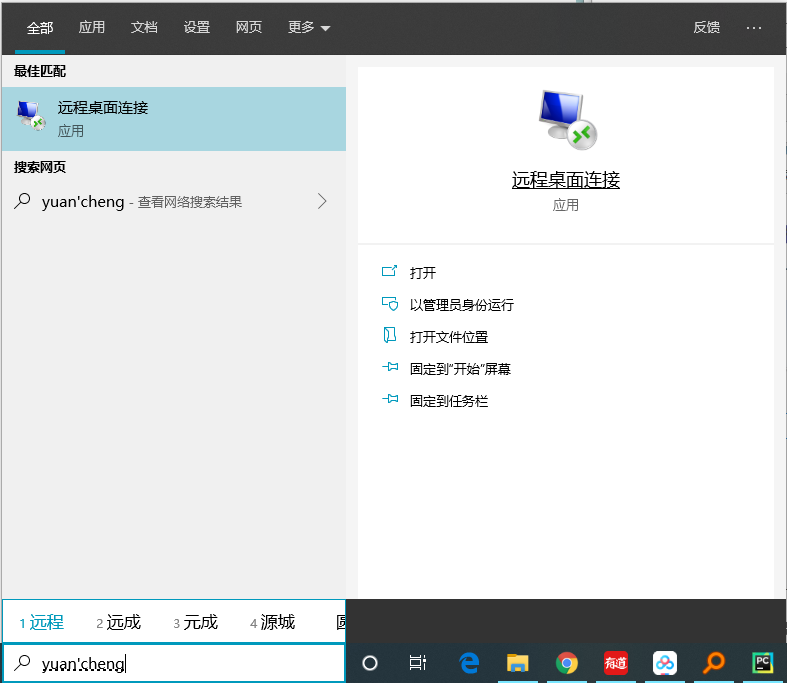 或者直接在win10搜索处搜索 “远程“二字,然后点击 “远程桌面链接”