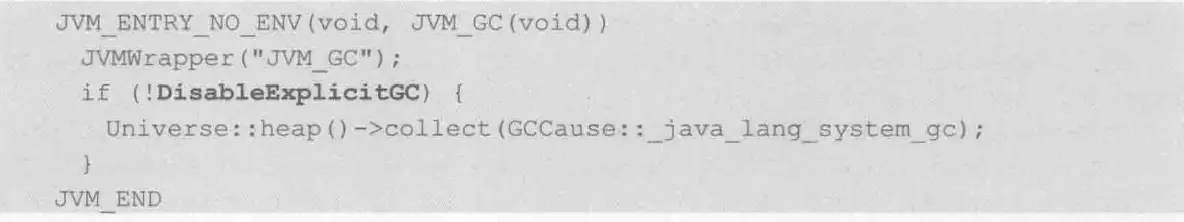 在默认情况下,执行System.gc()会显示的触发FullGC,同时对新生代以及老年大产生影响,进行回收。 其实在正常情况下,垃圾回收都是自动进行的,无需人为主动触发,因为频繁的触发垃圾回收对整体系统来说时没有好处的,因此虚拟机会提供一个参数DisableExceptionGC来控制是否手工触发GC的。