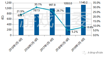 根据2019年1-6月中国游戏产业报告,中国游戏市场实际销售收入1140.2亿元,同比增长8.6%,其中手游占比67.6%,客户端游戏占比27.5%。