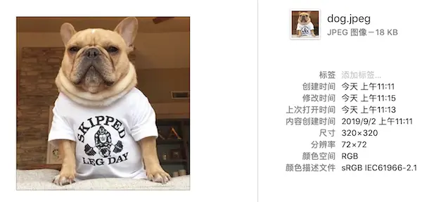 我们依然使用前文用到的那只可爱的 小狗狗 图片,它在我电脑上文件名为 dog.jpeg。