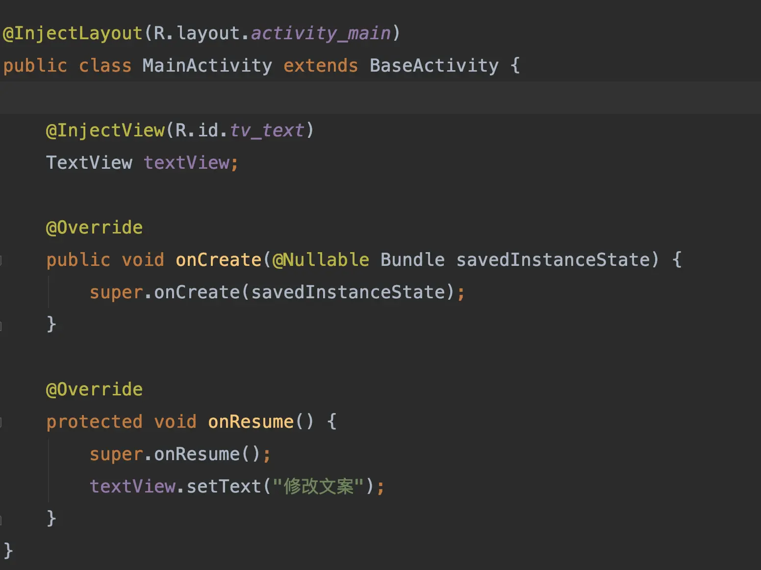 整体实现是通过反射+注解的方式实现,跟butterknife的实现方式还不太一样(butterknife是通过apt+注解,编译器编译时自动生成辅助类)。