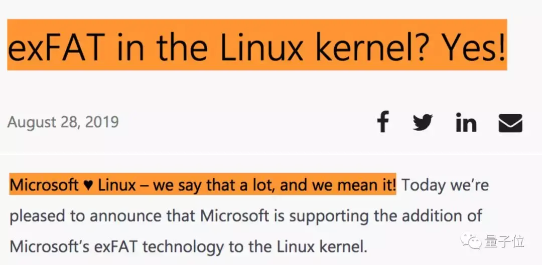 而现在,微软宣布支持往Linux内核里加入exFAT存储了。又是一次猛烈的公开示爱: