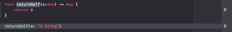 原因是,使用 Demo 时,已经将泛型具化为 String 类型,array1 就被同时具化为 String 类型,因此无法放入 Int 类型,而声明为 Any 就没有这样类型约束。 为了对两者安全性有更直观的了解,下面是个更“直白”的例子,我们声明一个返回自己的函数: