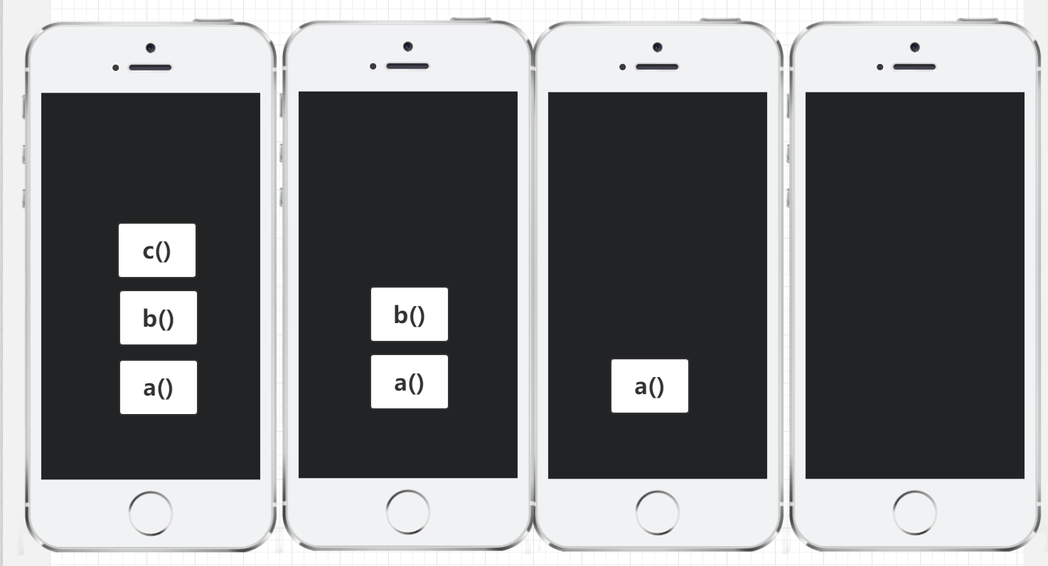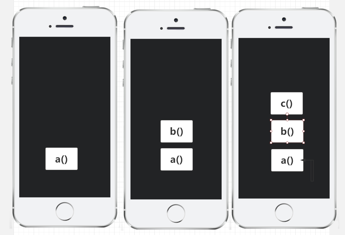 此时堆栈中的内容是这样的(可以理解为苹果手机就是栈)