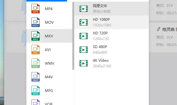 3、然后还是需要考虑到转换格式的问题,因为软件会默认转换mp4格式,也许很多人比较喜欢mkv格式的视频,所以也是可以转换的,选mkv格式就可以了。