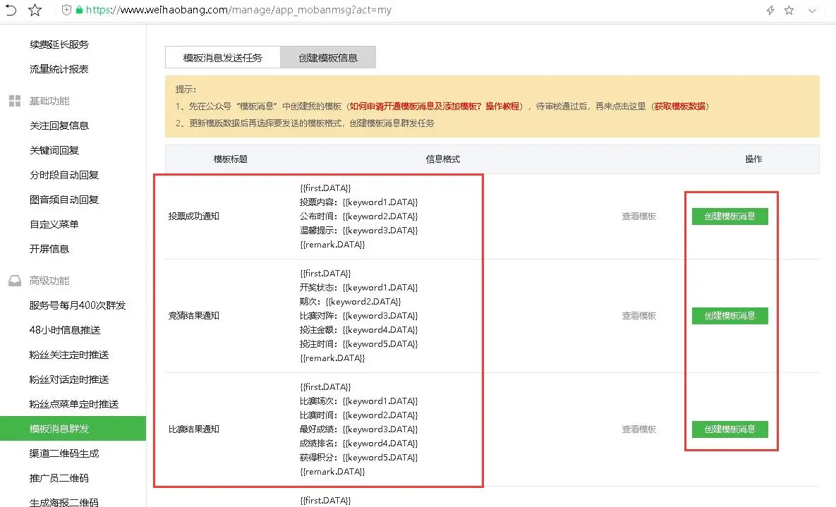 微号帮提供服务号每月400次群发、模板消息群发功能,不同的场景应用不同的功能,今天主要讲解模板消息群发功能。