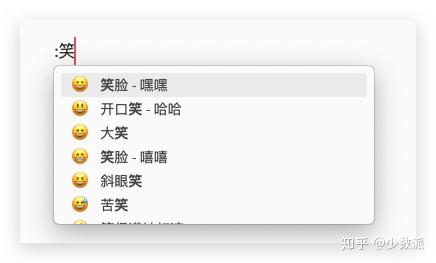 在编辑笔记时,使用西文的冒号 :,并紧跟着输入一些中文关键词,应用就会识别出匹配的 Emoji 图标并提供候选框,我们可以利用上下方向键来挑选,按下回车就能直接输入。