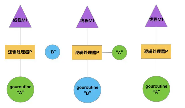 基于调度器的内部算法,一个正在运行的goroutine在工作结束前,可以被停止并重新调度,调度器会停止当前正运行的goroutine,并给其他可运行的goroutine运行的机会
