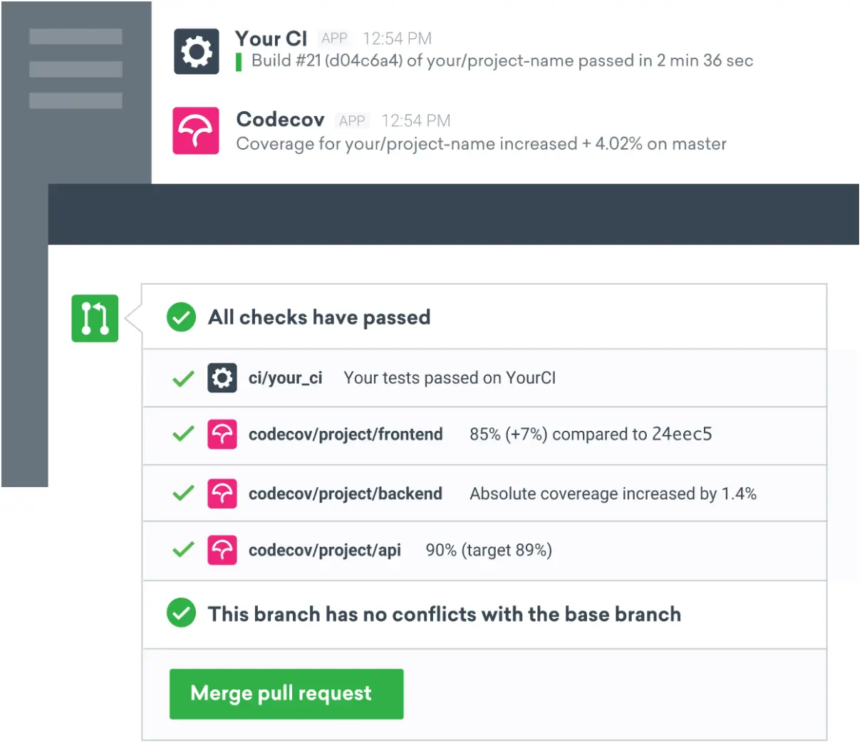 不过,一旦我们使用合并前集成(Integration before Merge)的方式,便能够得知每个改动中每个文件的覆盖率情况,从而在开发过程中主动避免覆盖率下滑,把质疑集中到问题的来源 —— 提交代码并且覆盖率不足的人身上。
