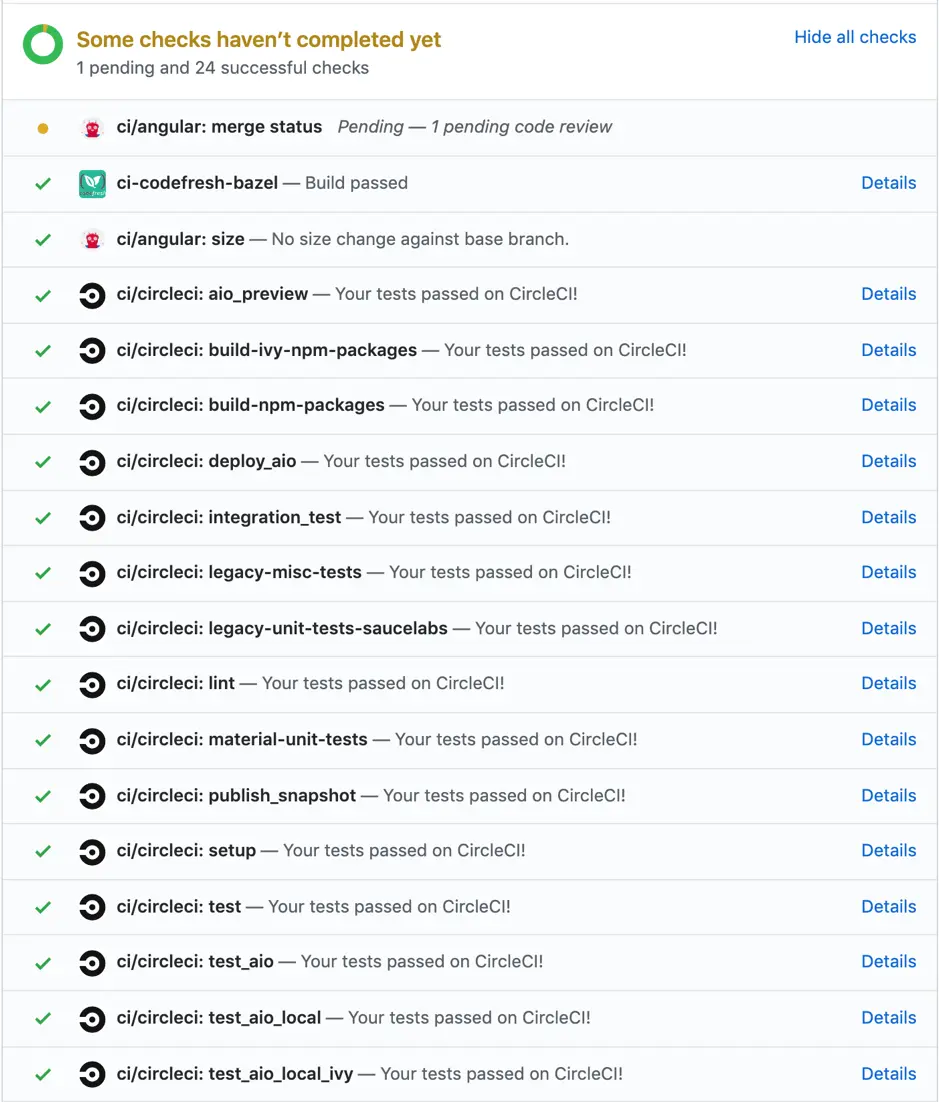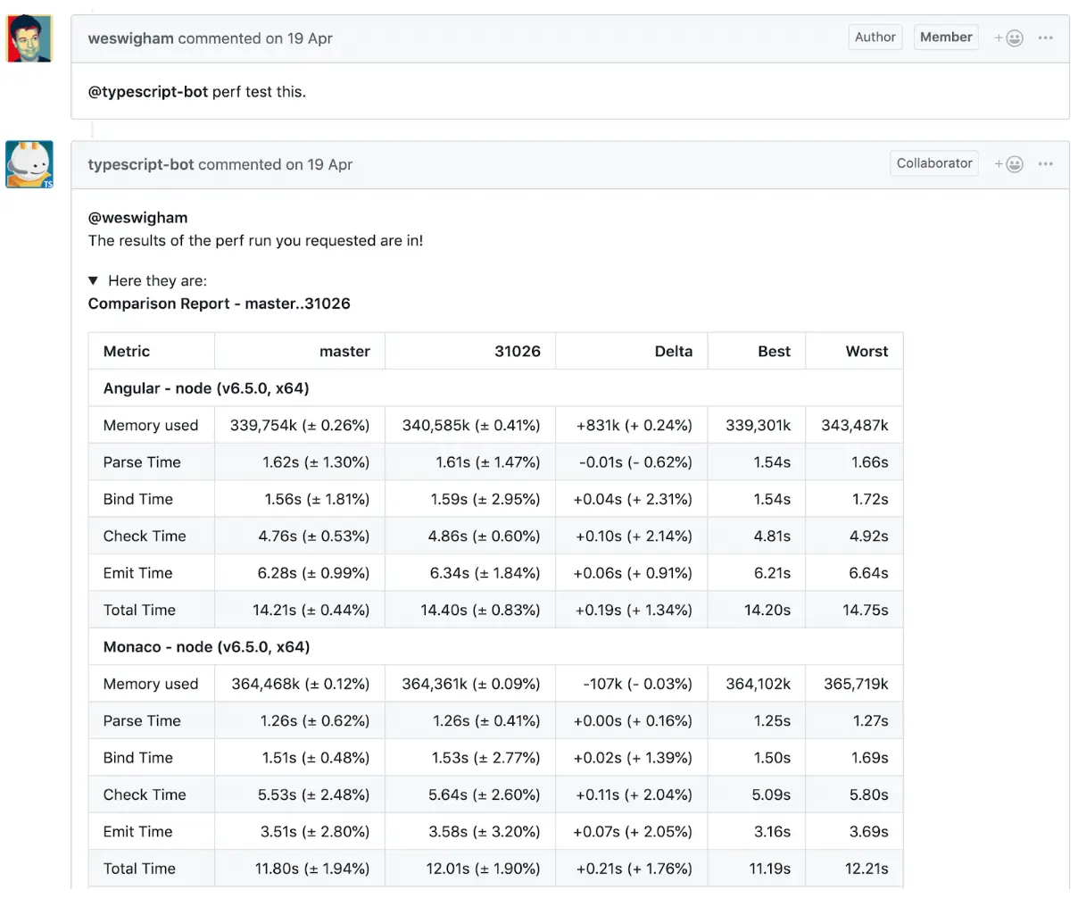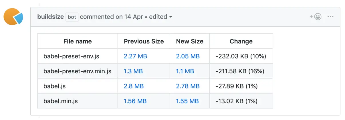 通过 GitHub flow,我们能够在合并之前得到所有相关的信息,并自行判断问题的严重性(其他 Reviewer 也有义务判断)。如果本次改动并没有添加新的依赖,但是构建后大小急剧增加,那么可能就需要检查文件引用或者构建过程存在问题。