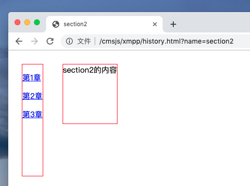 在浏览器加载该页面,当我们点击不同的章节链接时,内容会跟着变化,浏览器的标题也跟着变化。但是: