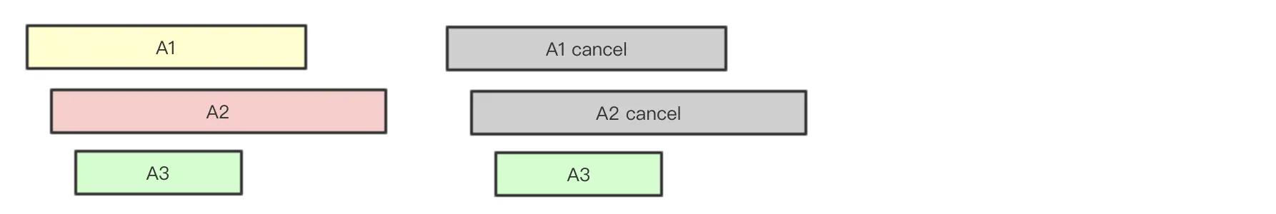 同时我们假设,每一个请求受网络因素影响,响应返回的时间不定。如上图,实际响应返回顺序是:A3 -> A1 -> A2。因此尽管我们期望的是对应用产生效果的正确请求应该是 A3。最终实际生效的是 A2。于是在实际环境中,最终或许导致一个致命的错误。