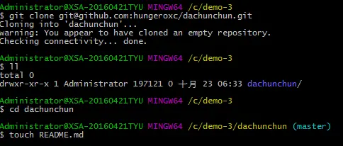1,进入刚添加进来的远程仓库,并touch一个README.md文件;