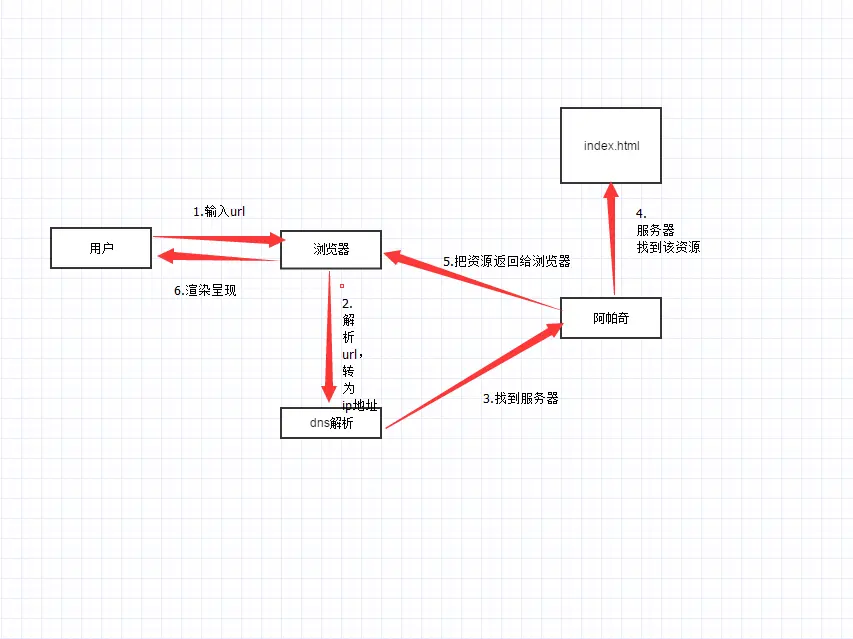 - 输入url,通过本机dns解析为ip地址,通过ip地址找到阿帕奇服务器;