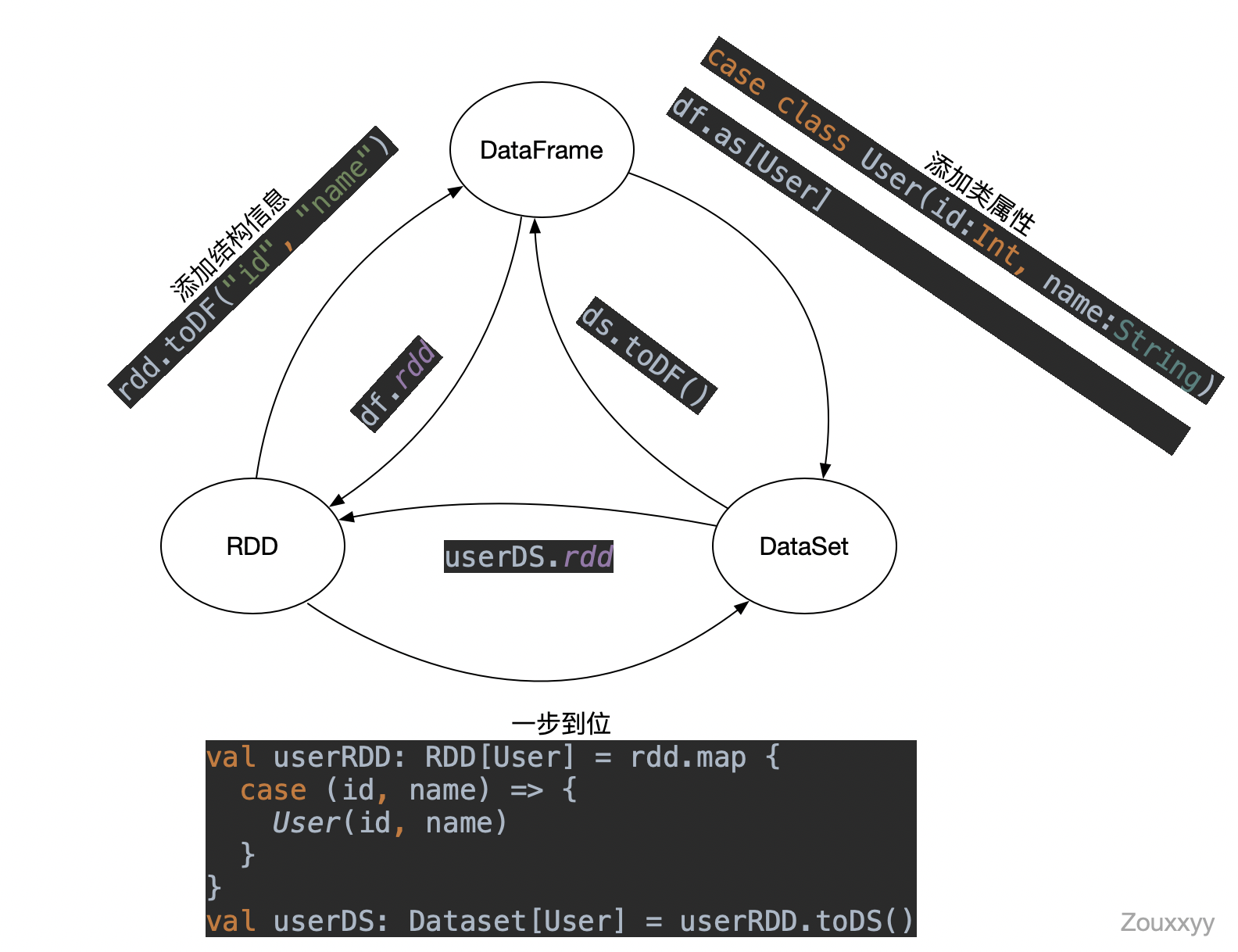 DataFrame和Dataset均可使用模式匹配获取各个字段的值和类型 -