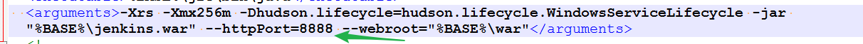 默认为 8080,我们可以在 ${jenkins_path}/jenkins.xml 中,在 --httpPort 选项指定需要的端口号: