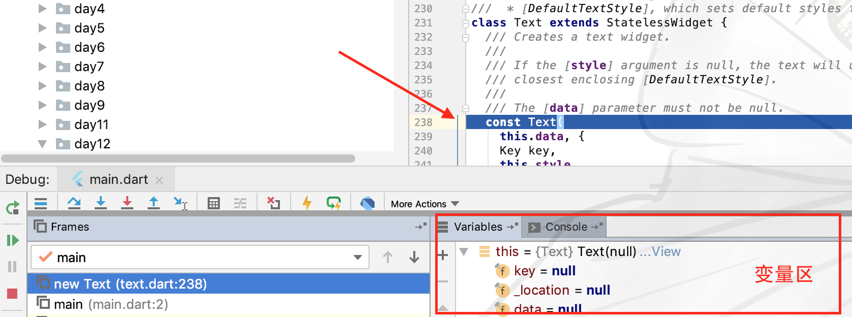 这里要调试,当然选小蓝,然后会发现进入了Text的构造方法,其中的变量区显示着当前类的数据成员