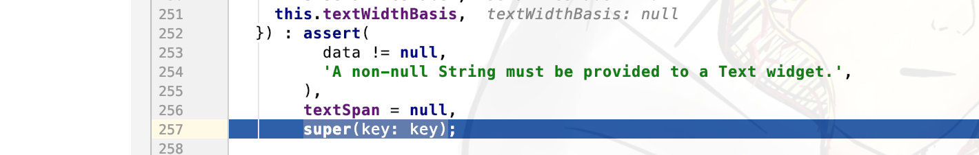 当到Widget时,在其构造方法中对成员变量key进行复制,很显然由于我们Text没有传Key,所以为null: