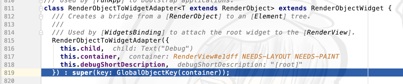 之后便会进入RenderObjectToWidgetAdapter的构造方法,入参是什么,还用我说么?