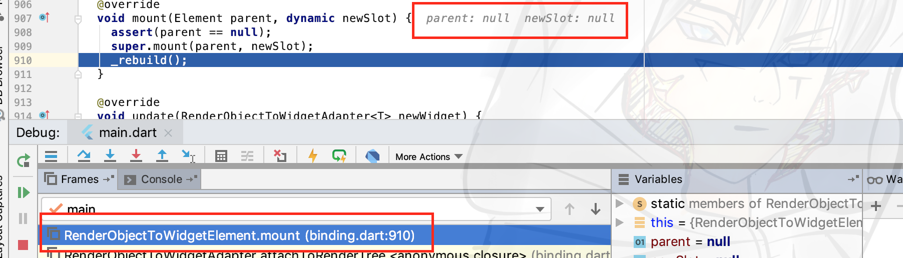 你会发现有执行到了RenderObjectElement#mount